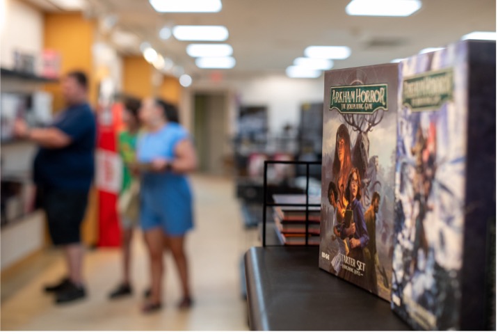 The gaming world itself is booming. Trading card games such as Magic the Gathering and Pokémon have become so popular that the industry has expanded exponentially. “It’s created space for other games to kind of step up and also grow and gain traction,” Colin shares. And you’ll find many of those games for sale here.