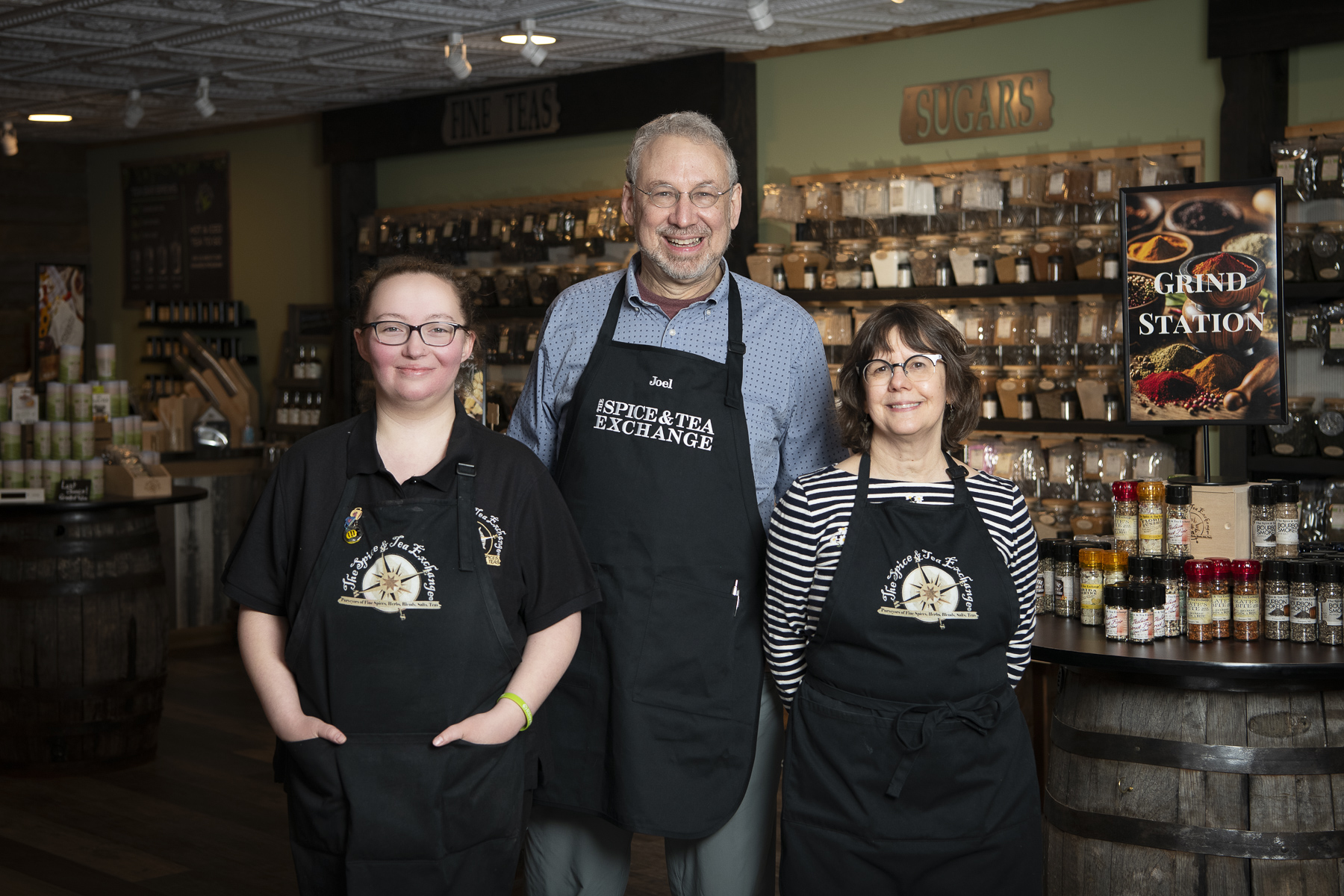 Step into The Spice & Tea Exchange® of Freeport on the hill below Main Street and you’ll first be met by the smell. Aromas drift from hundreds of glass jars filled with over 100 types of blended spices, 80+ full leaf teas, and countless salts, sugars, and honeys.